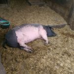 Typisch für diese Gegend ist auch das Schwäbisch-Hällische Schwein, eine besondere Schweinerasse. Unverkennlich sind die schwarzen Stellen.
