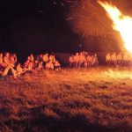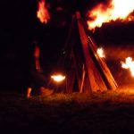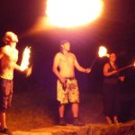 Nachdem es dunkel wurde zunächst eine Feuershow aufgeführt. Die Feuerspucker zeigten uns gekonnt ihre Künste. Zum Ende der Show wurde bei den Klängen der Schweizer Nationalhymne das große Lagerfeuer entzündet. Als das Feuer so richtig entfachte haben die Pfadfinder zu Gitarrenspiel gesungen.