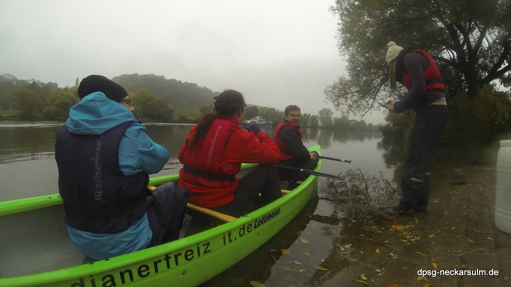 Mitte Oktober, morgens um 8:00 Uhr treffen wir uns Leiter am Pfadiheim. Sehr früh, bewölkt, ca. 5 Grad, Nieselregen. Sicherlich nicht gerade das Wetter das man zu einer Kanutour auf dem Neckar erwartet, allerdings wollten wir ja auch nicht im Neckar schwimmen gehen. 4 Leiter haben sich krank gemelded und waren sonst irgendwie unabkömmlich. Schade….