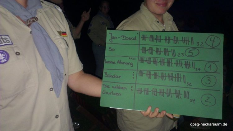 WeiterlesenBei der Lagerolympiade werden Gruppen über die Stufen hinweg gebildet. So ergeben sich Gruppen in denen alle Stufen vertreten sind. Dabei mussten verschiedene Stationen angelaufen werden. Beim Teebeutelweitwurf müssen (übrigens bereits benutzte) Teebeutel möglichst weit geworfen werden. Beim Kimspiel sind Gewürze und Gerüche mit verbundenen Augen zu erraten. Beim Schätzspiel mussten unterschiedliche Mengen von Zucker,…