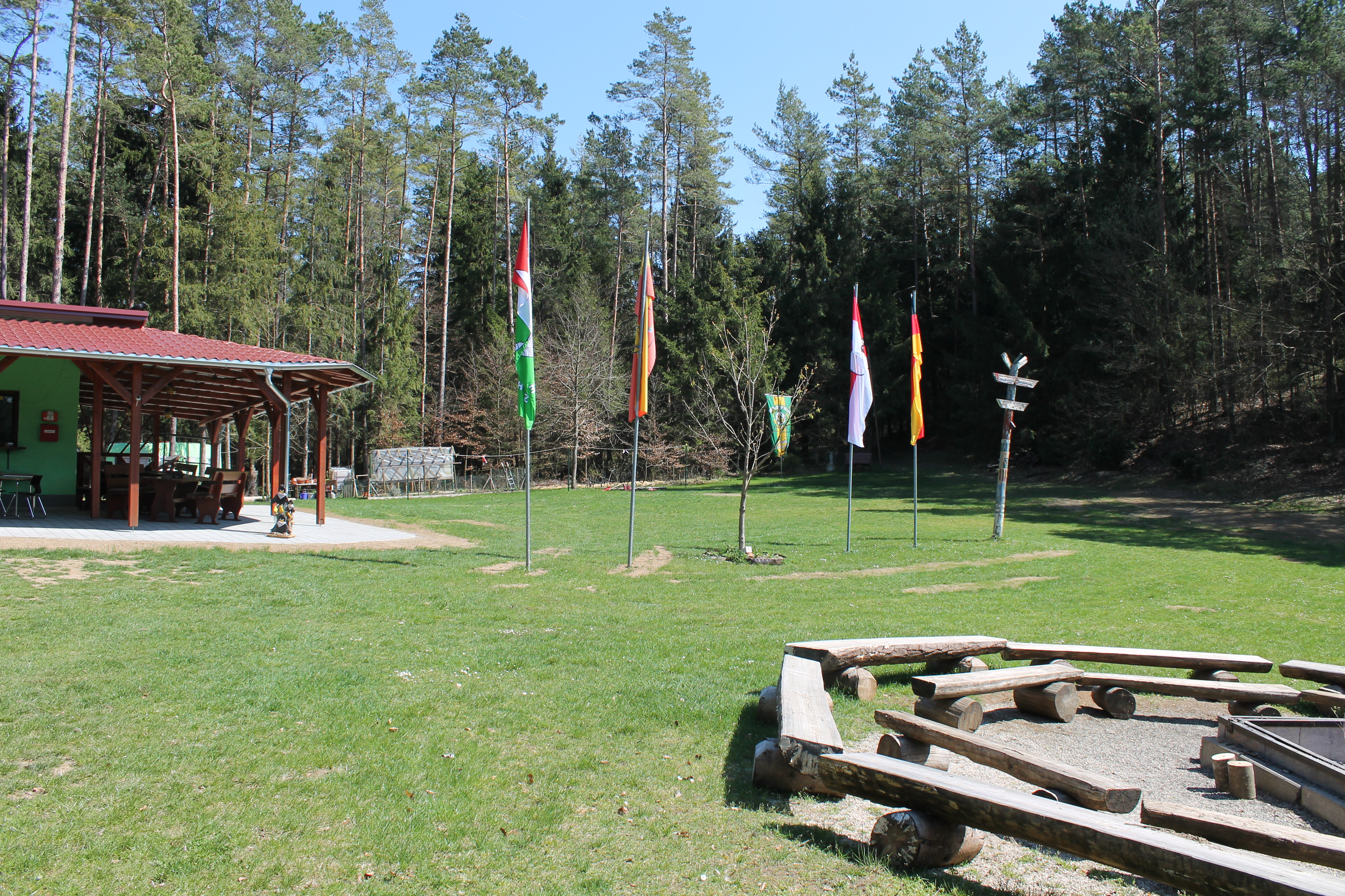 IMG_1310Auf dem Platz ist viel Raum für unsere Zelte, die Ess- und Feuerstellen und Spielfelder. Neben neuen Waschgelegenheiten gibt es eine große Feuerstelle, überdachte Sitzmöglichkeiten und einen Kräutergarten. Nur 400 m vom Platz enfernt befindet sich eine Burg, die wir besichtigen können.
